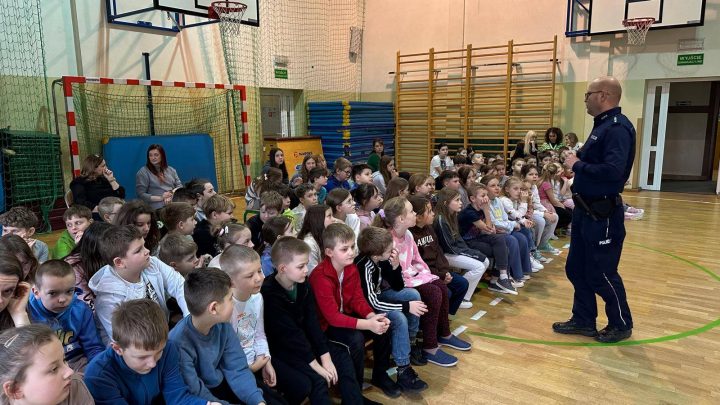 Jak je bezpiecznie spędzić ferie? Na co zwracać uwagę? Przed czym się chronić? O tym i wielu innych ważnych rzeczach opowiadał naszym uczniom dzielnicowy Piotr Bator.