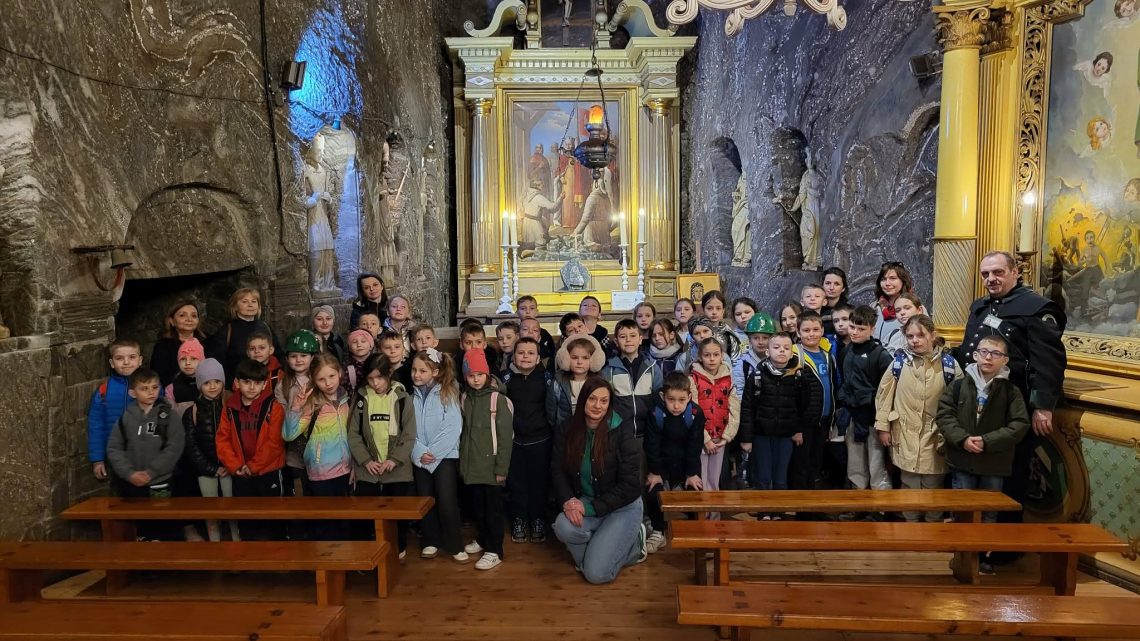 14 kwietnia 2026 roku uczniowie klas 1–3 udali się do Bochni. Wycieczka do Kopalnia Soli rozpoczęła się od spotkania z przewodnikiem. Następnie dzieci zjechały pod ziemię prawdziwą windą górniczą, co już na początku było dla nich dużą atrakcją. Podczas zwiedzania uczniowie przemierzali solne korytarze, poznając historię jednej z najstarszych kopalni soli w Europie, działającej od XIII wieku. Wycieczka miała charakter edukacyjny – dzieci dowiedziały się, jak wyglądała praca górników, jakie narzędzia wykorzystywano oraz jak powstawała sól. Często towarzyszyły temu ciekawe opowieści i elementy multimedialne, które ułatwiały zrozumienie historii. Wycieczka była dla uczniów klas 1–3 niezapomnianą przygodą. Połączenie zabawy, nauki i niezwykłego miejsca sprawiło, że dzieci wróciły zadowolone, bogatsze o nowe doświadczenia i wiedzę.